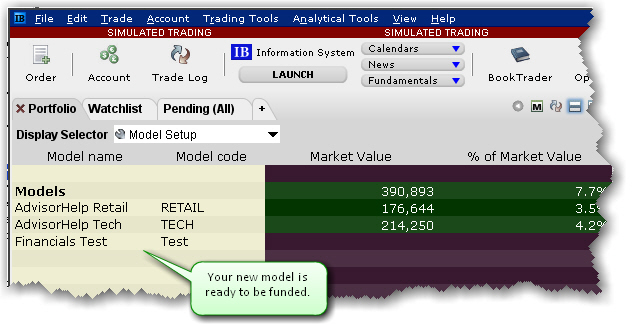 The structure for the new Model displays in the Models section of the Portfolio page. At this point the Model has no funds, no assets and no investors.
