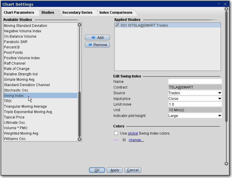 The Swing Index tries to determine the real strength and direction of the market by comparing the relationships between the high, low and close prices of a stock.